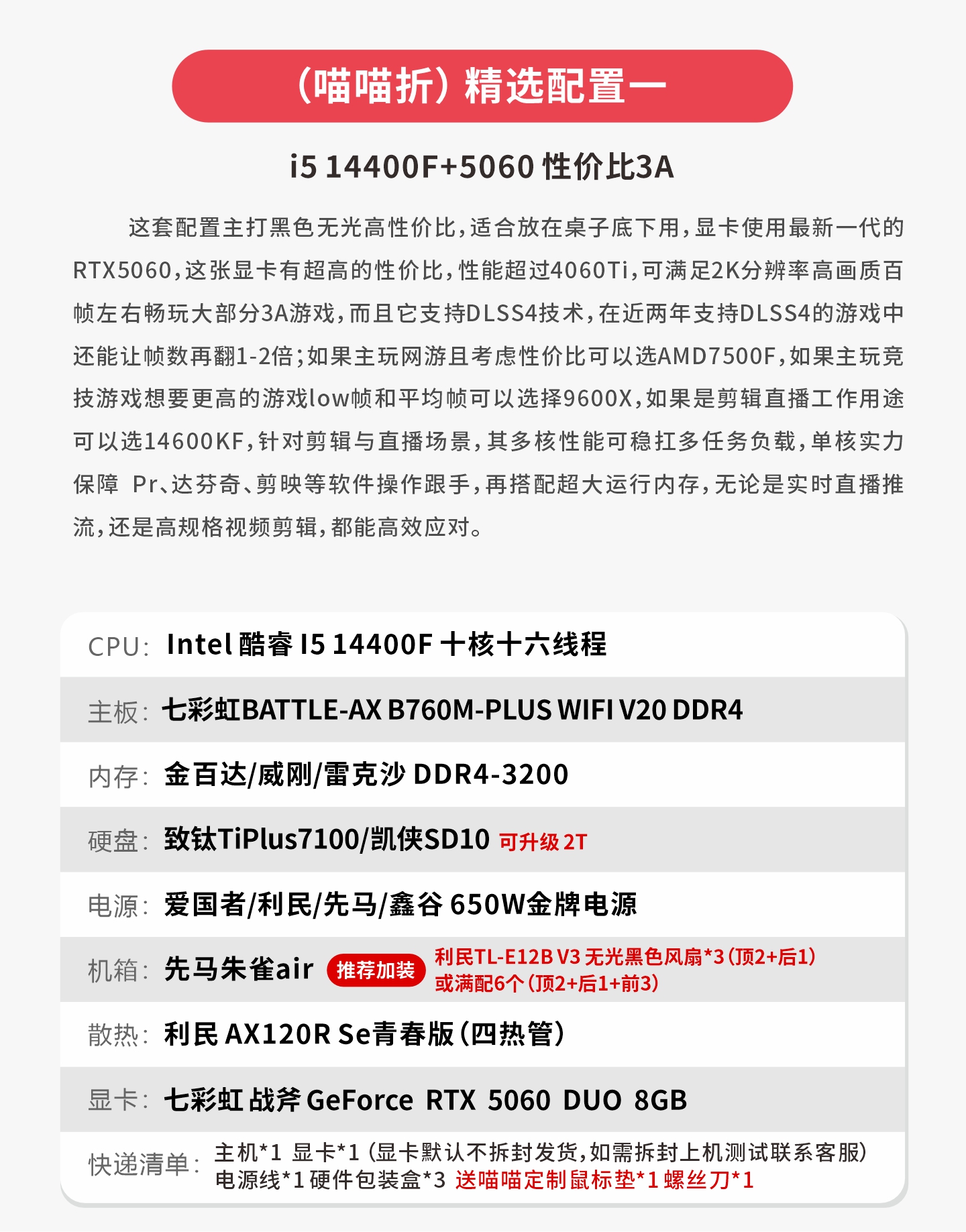 RTX 5060 爆款性价比无光3A竞技游戏电脑主机